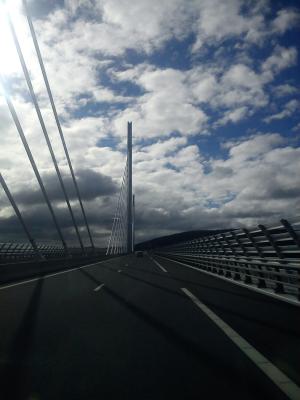 zum beispiel an das schoene vichy, an die unglaubliche erscheinung der stadt puy en le valey, an die vielen orte die wir waehrend der fahrt sehen durften, an den buddhistischen tempel der wie aus dem nichts ploetzlich vor uns erschien, die kneipen und bars, die oft an skurrilitaet nicht zu ueberbieten schienen ( besonders die mit der koechin, die mit lila farbenen dreads und nem papagei auf dem kopf kochte) und die menschen, die uns aufnahmen, uns halfen und erfreuten. ich persoenlich verliebte mich in eine rockverkaeuferin aus der bretagne und bertram in einen musiker aus lodeve.