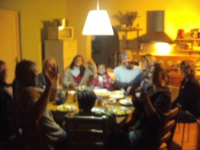 Susi kocht fuer Alle, das heisst fuer Alle die hier unser Schicksal teilen und Teil einer weltumspannenden Organisation namens WWOOf sind und hier mit uns gegen Essen und Unterkunft arbeiten. Das Ganze organisiert sich hauptsaechlich uebers Internet und wird von Menschen aller couleur benutzt, die einfach mal rauswollen, essen brauchen, Ihre Weltreise so geplant haben, oder an Landwirtschaft interessiert , jung oder alt sind und aus allen Teilen der Welt kommen . Kurz gesagt Susi kocht fuer uns internationale freiwillige ArbeiterInnen und das macht Sie herzlich und gut. Wir haben ein gutes Zimmer und das Privileg allein schlafen zu duerfen. Unser Gemach liegt neben der Gemeinschaftskueche, in der Einiges los ist. Was zum Teil an einem Einheimischen Mitbewohner liegt der gerne und haeufig unglaublich schlechte Laune hat und uns Auslaendern ein bisschen Seine Kultur naeher bringen moechte- funktioniert uebrigends bestens ! er schmollt gerade wieder, weil Er eine Ansage bekommen hat wegen Seiner lauten portugiesischen Musik die nur Er allein hoeren moechte und 8 betretene « Auslaender » sich irgendwann einig waren, Ihn zu bitten Seine Musik beim Essen auszumachen. Jetzt ist erstmal bei Ihm Totengraeberstimmung, die aber meist nur bis zum Ende seiner Flasche Wein reicht)