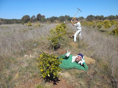 So jetzt ist Maditas Geburtskuchen fertig und Susi guckt mir ueber die Schulter und ich bin muede. Deswegen sage ich jetzt Adieu aus dem schoenen Portugal mit seinen Straenden und Hafenstaedtchen und Bussen und seinen furchtbaren Supermaerkten und den extrem heissen Orangenfeldern auf die ich morgen wieder arbeiten gehe um Eine rote Erde aufzuhacken die haerter als Fels ist und auf die ich mich trotzdem freue.